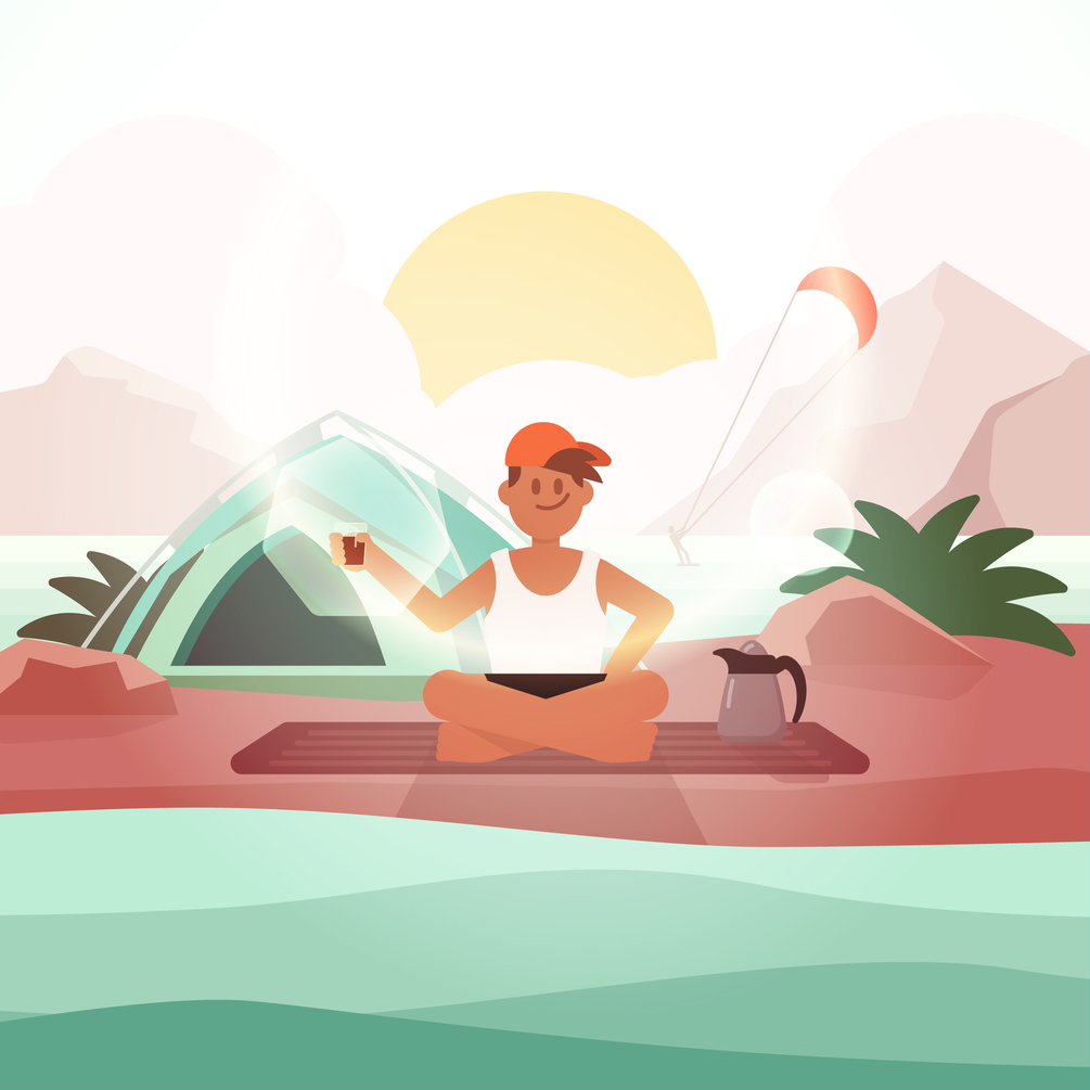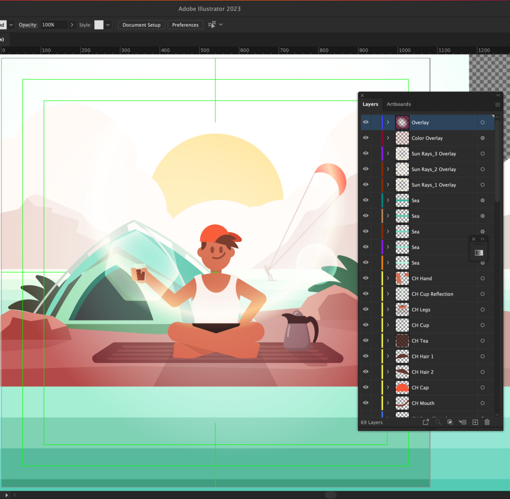 Illustrated Scene Designed with animation in mind. Every element is separated in a labeled layer.
