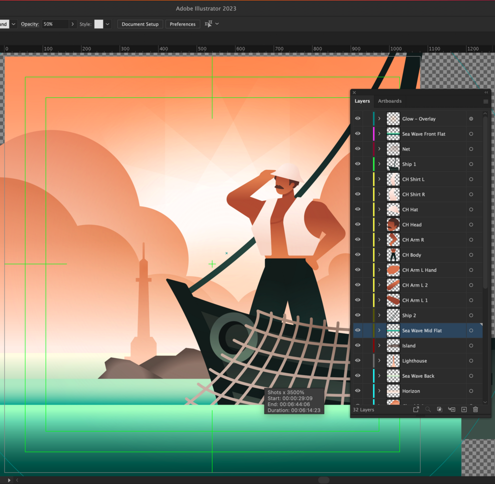 Illustrated Scene Designed with animation in mind. Every element is separated in a labeled layer.