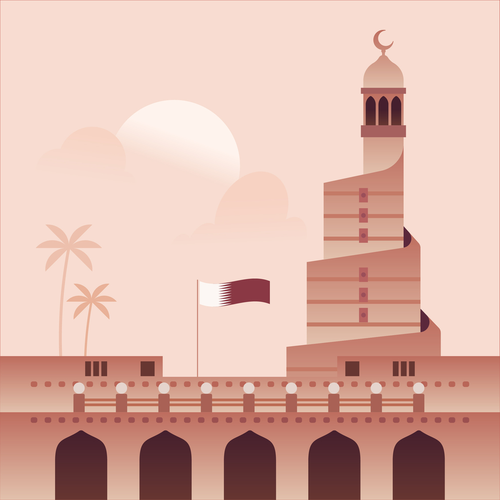 Qatar Souq Waqif cultural landmark abstract vector illustration. An Abstract scene designed and prepared for animation. It would be suitable for social media uses.
