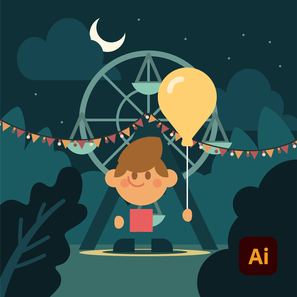 Illustrated Scene Designed with animation in mind. Every element is separated in a labeled layer.